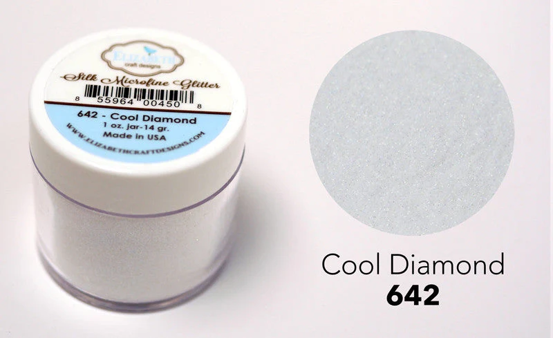 Cool Diamond 1oz. Silk Microfine Glitter is a high quality microfine glitter with an amazing shine. Perfect for adding a sparkle to your card making, scrapbooking and other craft projects. When combined with Double Sided Adhesive tape by Elizabeth Craft Designs, Inc. and the “Polished Silk” Technique the results are spectacular.