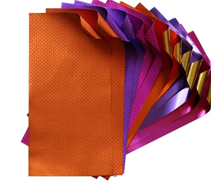 foiled paper has texture on one side and gold on the other.  12 sheets 6 different colors