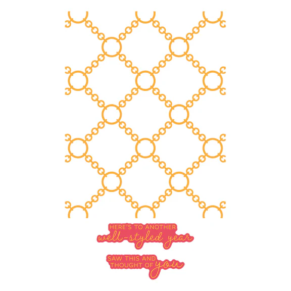 Elevate your card fronts with a pattern that feels refined, modern, and quietly glamorous. The Luxe Links Glimmer set creates an interlocking chainwork motif—sleek circles and delicate links that echo classic quilted leather and fine jewelry detailing.