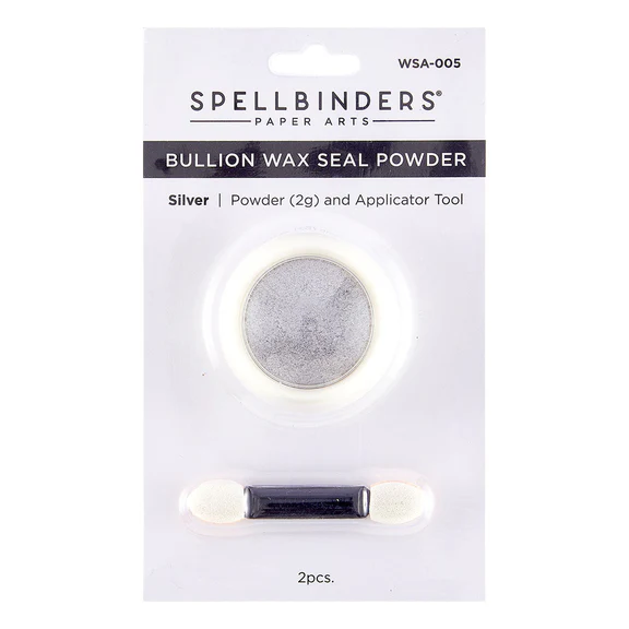 Silver Bullion Wax Seal Powder is a fine grade metallic press powder that helps highlight the raised design in the wax seal. It comes in a 2g container and an applicator tool. After the wax seal is made and cooled, apply the Bullion Powder with the applicator over the raised area for a touch of elegance!