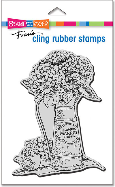 Hydrangeas in a tall tin are the perfect gift of gratitude for your card. Image measures approximately 3.75 X 5 inches. This original design by Fran Seiford is deeply etched and precision cut from premium gray rubber on a 1/8″ gray rubber foam backing